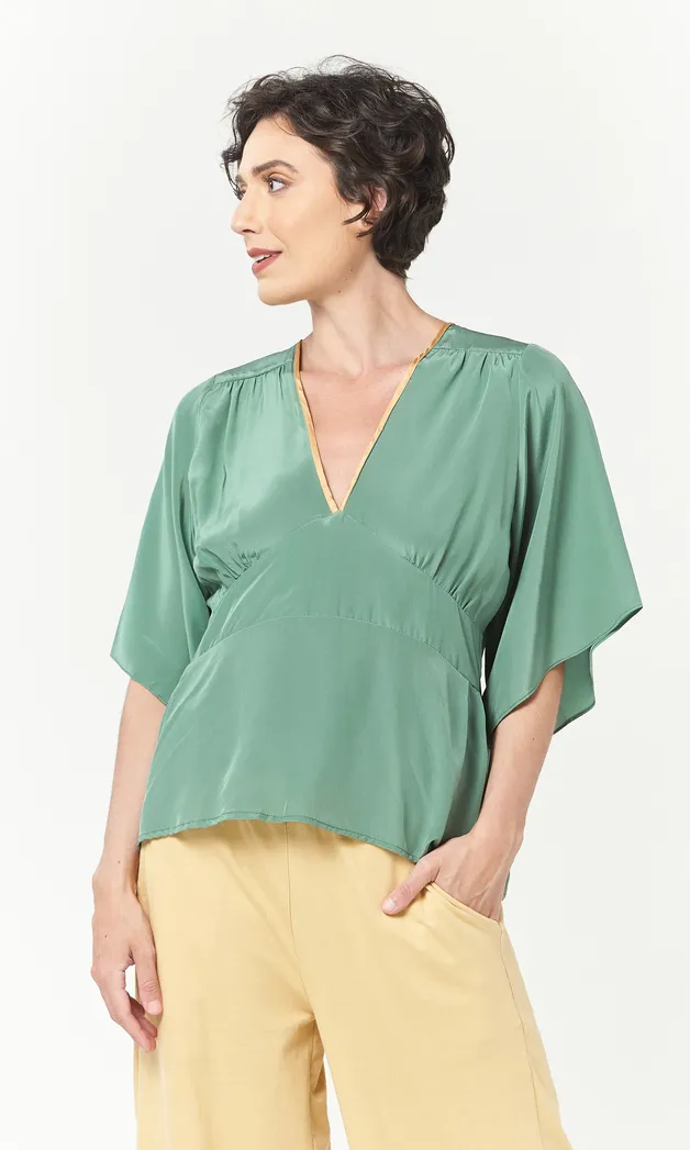 Disponível em um tom verde suave, que combina facilmente com diversas peças, essa bata é perfeita para compor looks casuais e também para eventos mais formais. Use-a com jeans, saias ou calças de alfaiataria e sinta-se confiante e elegante. A Bata de Seda é uma peça versátil que pode ser usada em diferentes estações do ano, garantindo que você esteja sempre na moda. Adicione essa beleza ao seu closet e aproveite a combinação perfeita de estilo e conforto.