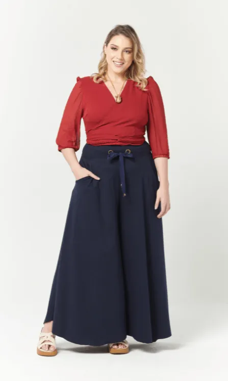 Experimente a Calça Pantalona Marinho e descubra como é fácil estar na moda, sem abrir mão do conforto!